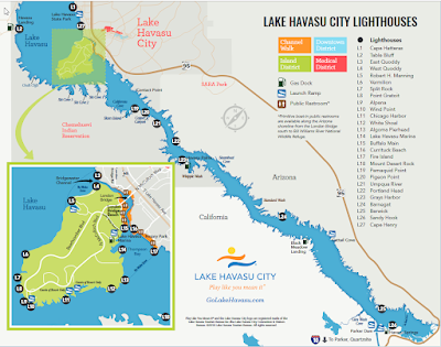 Che Lake Havasu City non sia una città come le altre lo si era già ampiamente intuito. E, a proposito di stranezze, dovete sapere che in questa città è presente la più alta concentrazione di fari (lighthouses) degli interi Stati Uniti. E non c'è neppure il mare... Il tutto risale al 2000, quando un gruppo di residenti preoccupati pensò che fosse necessario fare qualcosa per migliorare la navigazione notturna per la navigazione lungo il bacino idrico del Lake Havasu: ben 26 repliche in miniatura di famosi fari sono stati costruiti lungo le coste della Pittsburgh Peninsula e sono tutti visitabili anche grazie all'aiuto della mappa che vi verrà fornita al visitor center di Lake Havasu City. Alcuni li potrete raggiungere direttamente con la vostra vettura percorrendo la Beachcomb Boulevard (una strada circolare che attraversa la penisola), altri camminando per qualche minuto, altri ancora invece solamente via mare.
